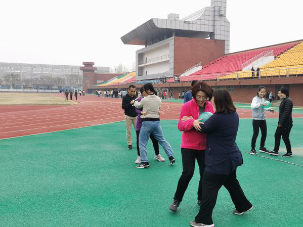 细雨初停,春寒料峭,依然没有挡住电气工程学院女教师们的参赛热情,活动现场,老师们个个精神饱满,激情四射。活动分为三个比赛项目:连续传递、跳绳、背对背拥抱,女老师分为两队,大家分工合作,现场气氛热烈,比赛紧张有趣,学院领导和部分男老师也到现场加油助威。
