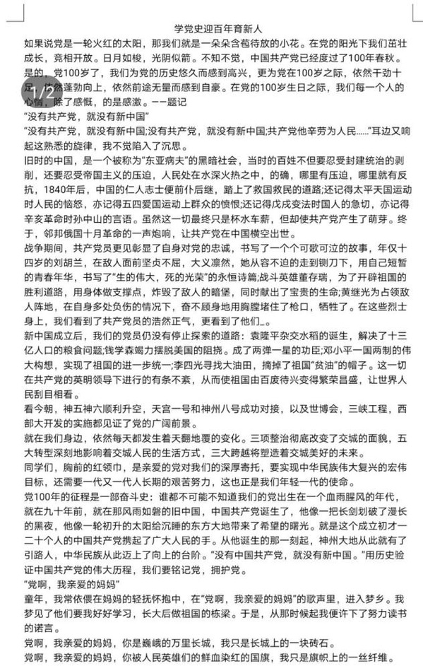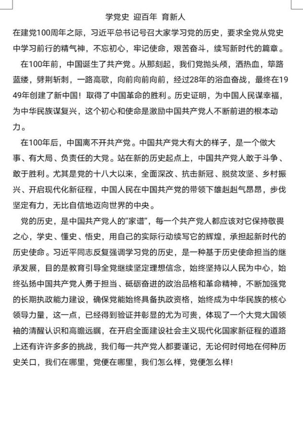 通过此次学党史征文活动的成功开展,提高了同学们对党史学习的意识,在学习和撰写过程中也深深的认识到,少年强则中国强,青年一代要铭记历史,不忘初心,奋力前行,为实现中华民族伟大复兴而不断奋斗。