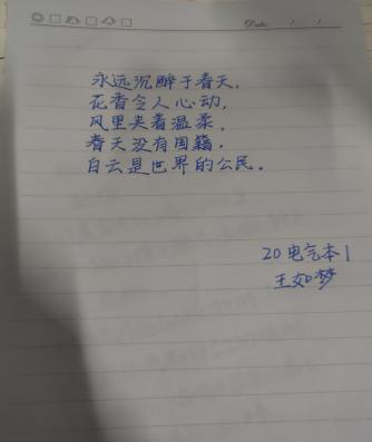 为使同学们拥有一双发现美丽春天的眼睛,同时为了留住万紫千红的春天,电气工程学院于4月11日举行“我为春天写首诗”活动,电气工程学院部分学生参加。
