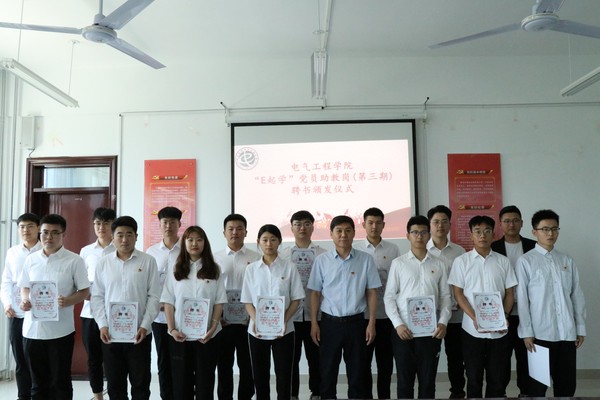 会议最后,辅导员程晓珊代表学校感谢毕业生党员为学校和学院的发展、建设付出的辛勤、富有成效的工作,并希望他们毕业后要牢记初心,再踏新征程,创新业绩,并为17级毕业生党员颁发“E起学”党员助教岗聘书并合影留恋 。