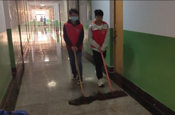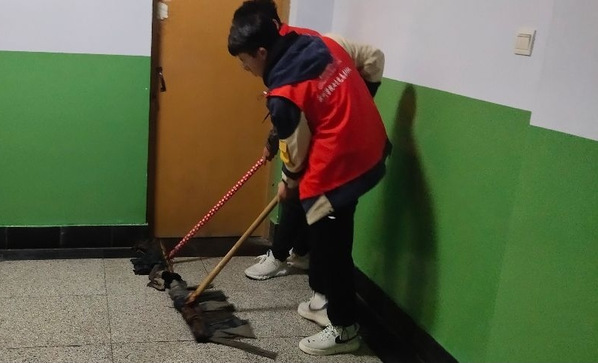 活动开始,志愿者们在宿舍楼下集合完毕,并获得宿舍工作人员许可后进入宿舍楼。在进行简单的任务分配后,由活动负责人组织志愿者对宿舍楼进行了分工清理,各楼层负责人带领组员积极参与打扫,清理楼层垃圾。在志愿者们的共同努力下,宿舍楼内整体面貌焕然一新。随后,志愿者们让组长对其打扫成果进行验收,确保环境干净整洁后,有序离场。