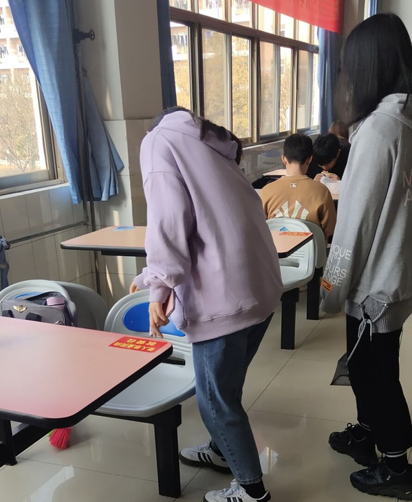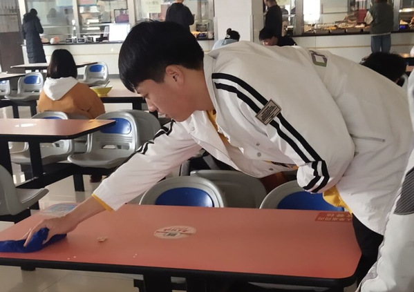 活动伊始,活动负责人在精细分工后,志愿者们纷纷走进学校餐厅,志愿者们各司其职,擦桌子,将饭桌、上的饭粒、残渣回收到饭堂,为下一位吃饭的同学提供干净的桌椅,再将饭堂里的桌椅摆放整齐并用扫把打扫地面上的饭粒、残渣与垃圾,清理卫生死角等,给后来就餐的同学们营造一个较好的就餐环境,更是良好校园文化的体现。活动期间志愿者工作认真负责,态度一丝不苟,并与餐厅师傅们互相协作、相互帮助,在工作之余彼此间亲切交流话家常,现场气氛温馨且和乐融融。
