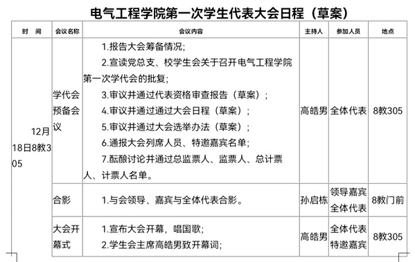 电气工程学院第一次学生代表大会拟召开时间12月18日,关于大会召开情况的报告 12月18日完成学生代表大会后进行补充公示。