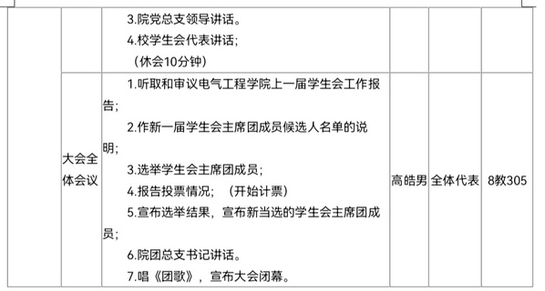 (6)选举时,进行学生代表选举,由代表填写电气工程学院第一学生代表选票后进行投票、计票。