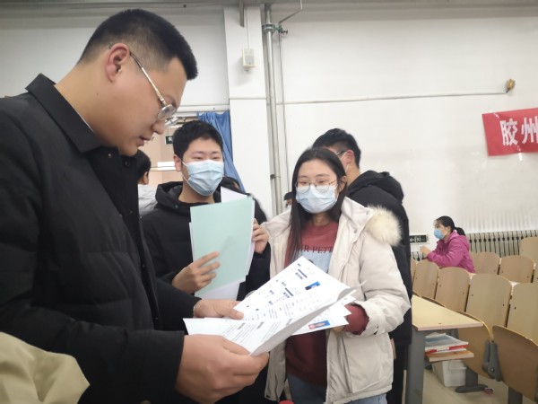 活动伊始,先后有青岛软控云蚁重工有限公司、特锐德、台励福机器设备(青岛)有限公司、中启胶建集团有限公司、青岛昊宇重工有限公司、青岛百瑞家居有限公司、福兴祥物流集团有限公司、禾丰食品股份有限公司、青岛胶东国际机场岗位九家企业进行宣讲。招聘单位通过播放宣传片、 PPT展示、面对面交流的方式向同学们介绍公司的概况、职业发展方向以及人员需求。此次招聘宣讲会上所提供的招聘职位有生产技术人员、销售储备经理、机械设计师、电气工程师、销售人员、储备干部、设计师等。宣讲过程中,同学们认真听取每一个来访企业的介绍,并就自己关心的问题积极提问咨询,现场气氛活跃,整体宣讲效果良好。