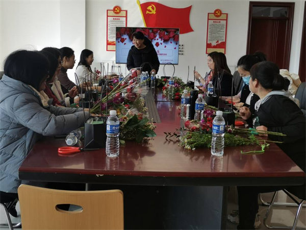 为庆祝第112个“三八”国际劳动妇女节,进一步丰富学院女职工业余文化生活, 展现女性魅力,3月7日上午10点在11教310活动室,电气工程学院分工会组织开展了“魅力女性 花漾人生”主题艺术插花活动。学院党总支书记刘廷明,党总支副书记、分工会主席张志出席此次活动,活动邀请了专业的花艺老师现场授课,学院全体女教职工参加了本次插花活动。