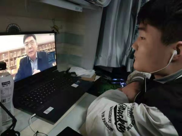 刘廷明指出,疫情防控形势日益严峻、情况十分复杂,全校师生齐心合力共同抗疫,学院要服从大局,做好疫情防控作各项工作,统筹做到防控与教学、防控与学习两不误。他要求,全体同学一要思想上高度重视,严格遵守学校疫情防控规定,一切行动听指挥。二要做好自己的心理防护,面对疫情防控导致生活、学习条件和环境的变化,及时做好自我心理调适,有一个健康积极的心态对待面临的问题;做好心理咨询调适,注重借助外界资源和力量,积极主动与亲人、同学们、班主任、辅导员等沟通交流。三要保持健康的生活方式,加强运动,既要多参加疫情允许的室外活动锻炼身体,又要撸起袖子加油干,做到防疫、学习两不误,争取两促进。四要开展志愿服务活动,在保证不接触风险人群的条件下,各位党员、入党积极分子、班干部和同学们,要发挥作用,并积极带头加强自我服务、自我管理。高联学介绍了同学们上网课的情况,就当前如何开展好线上学习,需要重点注意哪些地方,进行了指导,要求同学们加强与任课老师的沟通交流,合理制定学习计划和目标,劳逸结合,保证学习效率和结果。辅导员老师对学校疫情防控规章制度、措施进行了解读、说明,就我院志愿服务工作、存在的问题、注意事项等方面进行了工作安排和相关温馨提示。
