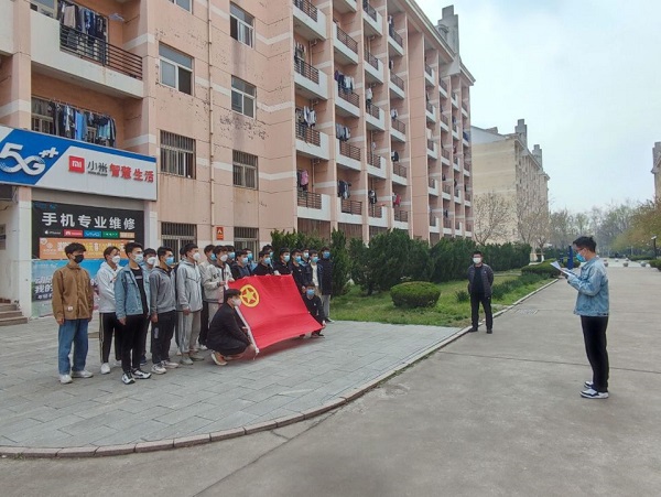 应校团委在疫情防控期间需成立宿舍楼临时团支部的号召,由我院负责的13号公寓于4月2日成立临时团支部,并于4月2日下午召开了支部成立仪式。参加成立仪式的有临时团支部指导教师赵建斌、临时团支部委员会成员及部分团员代表。