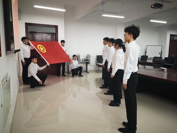 入团仪式在庄严的国歌声中正式开始,首先由电气工程学院团总支学生兼职副书记王如梦同学宣读团章。接下来,在鲜艳的团旗下,电气工程学院学生会主席团成员王登龙带领新团员宣读入团誓词,各位新团员面向团旗、右手握拳举过肩,在团旗下庄严宣誓,立志做一名优秀的共青团员,努力学习,以优越的成绩回报老师、回报学校、回报祖国、回报社会。随后,由电气工程学院主席团成员为三位新发展团员佩戴团徽,三位新发展团员的喜悦溢于言表。之后,新发展团员代表宋小宇同学进行发言,他表示作为一名新生共青团员,要遵守团的章程,践行入团誓言,从自身做起,努力学习,立志成才,做一名名符其实的共青团员,电气工程学院团总支书记赵建斌老师对宋小宇同学的发言表示肯定。最后,赵建斌老师进行入团仪式总结讲话,他表示入团应该是崭新的起点,而不是奋斗的终点,新发展团员需加强文化学习,提高自身素质,加强品德修养,积极参加团组织的活动,严格要求自己,在同学中起到模范带头作用。最后,在《光荣啊!中国共青团》歌声中,本次入团仪式圆满结束。