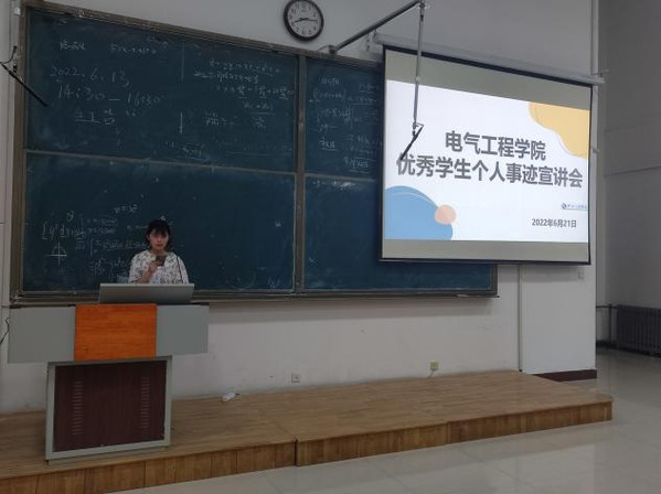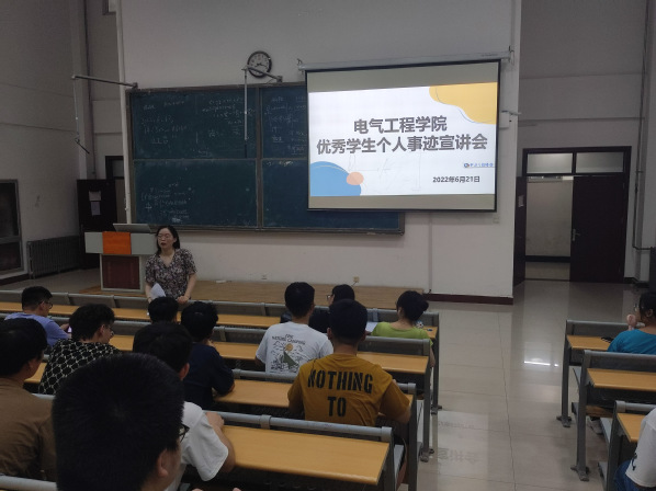 为充分发挥优秀学生的引领、榜样作用,扩大优秀学生事迹宣传面。电气工程学院于2022年6月21日晚19:30在8号教学楼305教室举办了优秀学生个人事迹宣讲会。电气工程学院辅导员王莉,优秀学生代表及部分在校学生参加了此次报告会。