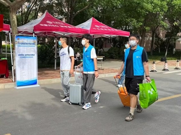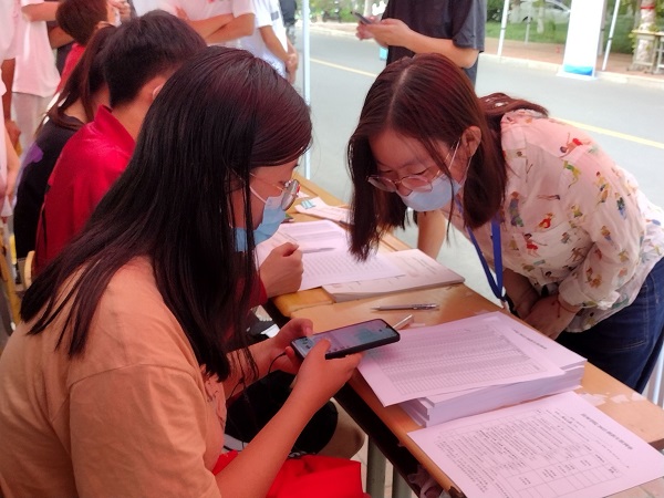 迎新前,学生科科长赵建斌、2022级新生辅导员王莉召开专门迎新工作动员大会,对各方面工作进行精细部署。8月27日早上6点30,全体工作人员准时到位,志愿者们身穿蓝色志愿服在自己的工作岗位严阵以待,欢迎22级新生的到来。不到7点,我院22级新生陆陆续续到达学校北门,完成进门后的核酸检测后,志愿者同学引领他们来到我院迎新第一现场,完成各类手续的办理,然后由志愿者带领新生到公寓楼,最后在各班班主任助理的帮助下他们顺利入住宿舍。志愿者同学们在迎新工作中认真负责,热情服务,对每一处细节工作都精益求精,细致周到的服务让新入学的同学们感到了最大的温暖和关怀。校园里志愿者们忙碌的身影、来来往往的行踪,是一道亮丽的风景线,也寄托着一颗颗奉献之心,彰显着崇高的志愿精神。