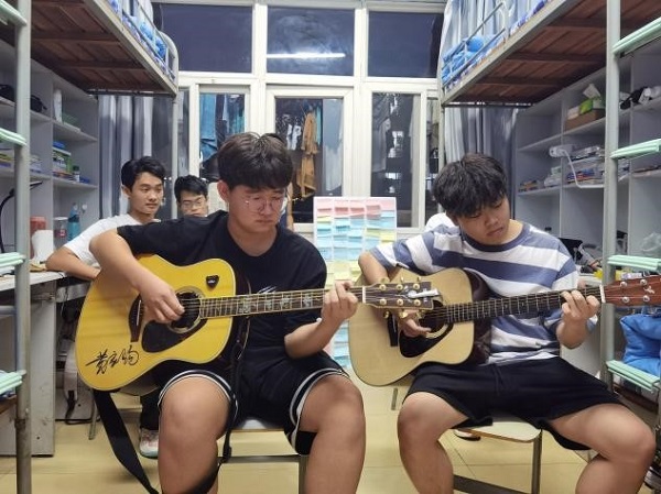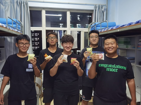 本次活动主要包括发放月饼、以宿舍为单位组织才艺表演、以及向家长及老师写节日祝福语等环节。活动开始前,由赵建斌老师与各位小班向新生们发放月饼,他代表电气工程学院向22级新生送上节日的问候与祝福,传递了浓浓情义,让大家感受到家的温暖和传统节日的魅力,在温馨暖暖的氛围中,新生们围坐一起欢聚一堂,品尝香甜美味的月饼。随后,举行了期待已久的才艺表演环节,唱歌、弹吉他,样样才艺都不落下,同学们自信地展示着自己的才华,宿舍内一片欢声笑语,掌声如潮、气氛热烈。接着,同学们拿起便利贴,在上面写下中秋时节对家人的思念,以及对老师们辛勤付出的感恩之情并与展板拍照留念,将这份温暖记录下来。活动最后,赵老师总结到,这是一个特别的中秋,特别的团聚,是一个终生难忘的夜晚,即使疫情暂时与家人朋友不能见面,但是大家的心始终在一起,期盼疫情早日过去,一切恢复正常。