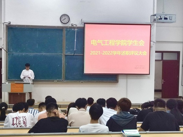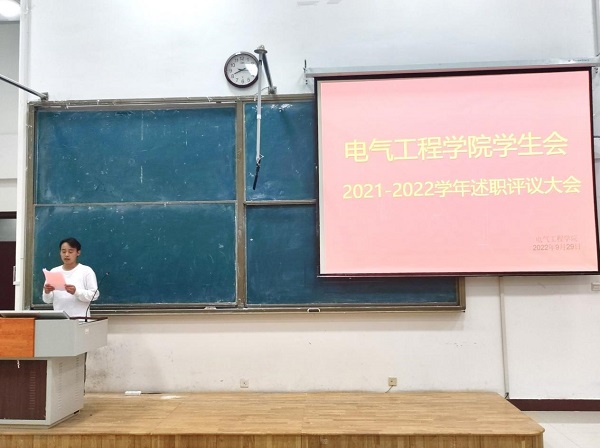 为总结电气工程学院学生会工作经验,分析在一年工作中的问题和不足以及在工作中的收获与评奖,以更好地投入到本学年的工作中。2022年9月29日晚上7点30分,电气工程学院在滨州学院8号教学楼305教室开展电气工程学院学生会2021-2022学年述职评议大会。电气工程学院学生科科长赵建斌、学生会主席团成员、学生会各部门部长、副部长以及学生会各部门评议人员参加了此次大会。
