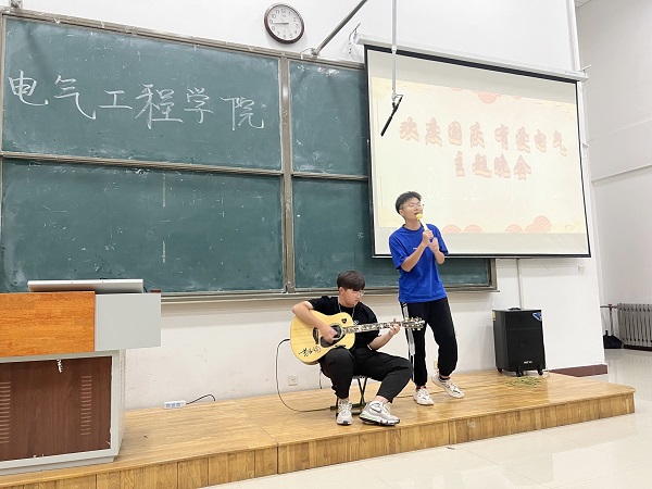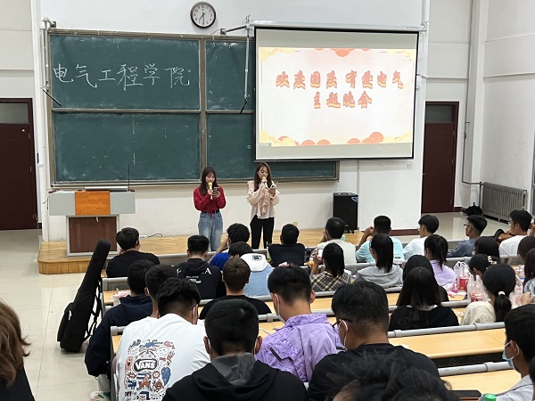 为庆祝新中国成立73周年,培养学生热爱祖国、热爱人民、热爱中国共产党的高尚情操,同时缓解国庆期间封校所带来的心理压力。2022年10月1日晚上7点30分,在8号教学楼305教室开展“欢度国庆,有爱电气”主题晚会。电气工程学院文艺部成员、各小班及22级全体新生参加。