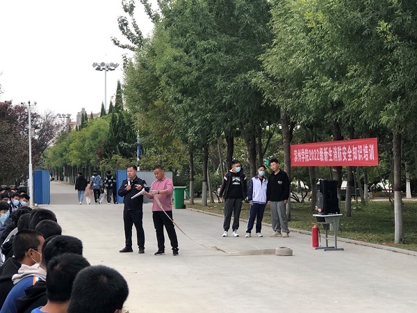 为进一步增强师生的消防安全意识,提高师生处置突发事件的应变和防护自救能力,营造安全、稳定的学习环境。2022年10月8日下午四点,电气工程学院在滨州学院新体育场北侧开展消防知识培训活动。滨州学院保卫处消防科科长杨玉杰、电气工程学院新生辅导员盛杰及2022级全体新生参加了此次活动。