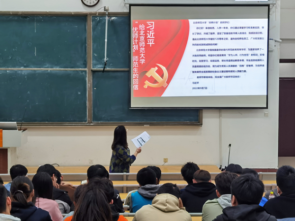 此次活动由各班班主任老师主持。活动前,由各班负责人组织同学们开展此次活动。首先班主任老师领读了《习近平给北京师范大学“优师计划”师范生的回信》,鼓励同学们学好知识,开阔视野,夯实专业技能,努力成为创新型人才,为中华民族的伟大复兴贡献一代人的磅礴力量。各班班主任结合自己的学习和工作经验为同学们现场答疑解惑,传授事半功倍的学习方法和思维方式。同学们感到十分温暖,学习习近平总书记回信中深有感触,倍受鼓舞,同学们结合在学校的学习收获以及暑期三下乡等社会实践经历,表示会在专业上学好专业技能,不断提升自己,增长才干,奉献一份热,散发一份光。接着,通过总书记习近平的回信,我院老师们纷纷表示,要努力奋斗在基层教育第一线,成为党和人民满意的“四有”好老师,为培养德智体美劳全面发展的社会主义建设者和接班人贡献力量。习近平总书记的回信充分体现了对教师教育的重视和期盼,办好新时代人民满意的教育,培养新时代的“四有”好老师是学校的重要使命。最后,各班班主任老师强调,希望更多同学成为师范生,保有教育热情,积极响应“优师计划”,走到乡野去,走到小镇去,走到祖国需要的地方去。