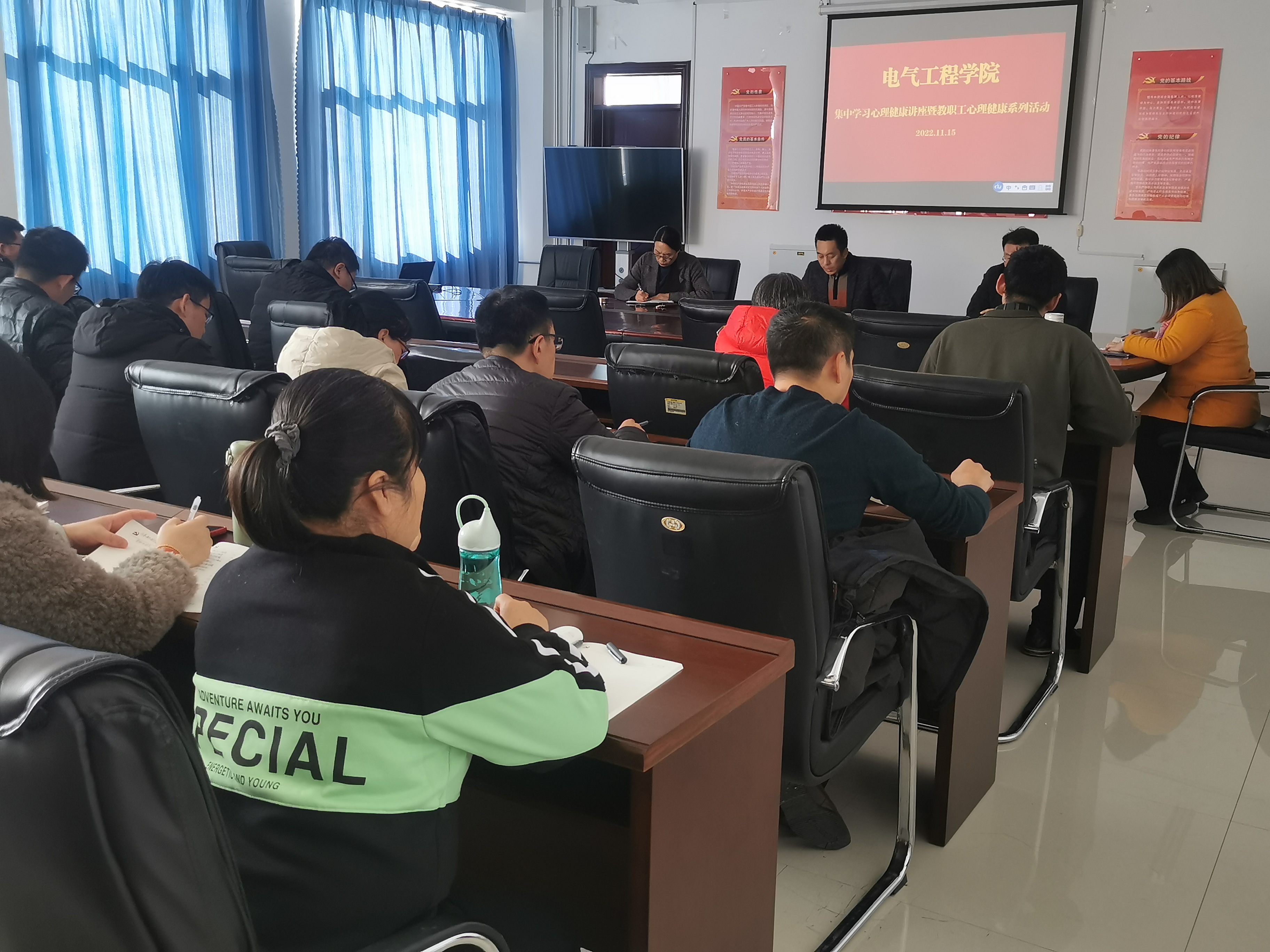 为落实学校《关于开展教职工心理健康系列活动的通知》要求,不断加强和改进我院教职工心理素质教育工作,推进和谐校园建设,11月15日,学院组织“听一个心理讲座”暨教职工心理健康系列活动活动,全体教职工集中观看了《彭凯平心理学》教育片,影片集中诠释了“积极心理学”的涵义与功用。
