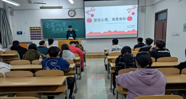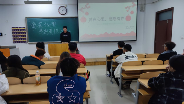 为了营造更加和谐的校园环境,加强学生素质教育培养,弘扬感恩文化、践行感恩教育,培养同学们的感恩之心。2022年11月23日,电气工程学院在8号教学楼402教室开展以“爱在心里,感恩有你”为主题的演讲比赛活动,此次比赛活动由我院心理辅导站组织,报名参赛的选手及学生观众参加了此次活动。