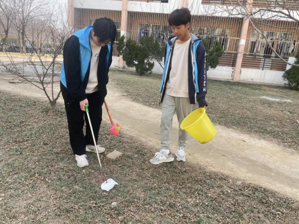 3月5日上午10点,我院组织入团积极分子进行“美丽校园伴我行”校园美化活动。活动开始前,同学们积极准备好卫生工具,按时在指定地点集合进行清扫。每位同学都积极地投身于志愿服务活动中去,大家分工明确互相协作,对11号教学楼周围空地及其树林中的落叶与垃圾进行仔细清扫,并对教学楼前停车区进行规整摆放。