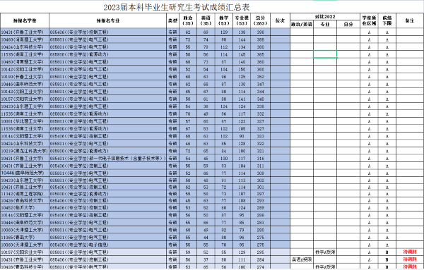 初试成绩公布后,学院第一时间掌握所有考生初试总分、各科分数,收取每名考生的成绩截图,汇总形成考研初试成绩统计表。通过分班级、分学校、分层次进行数据分析,并参照往年各学校的录取分数和复试情况,精准分析每位同学的上线可能。通过数据筛选,确定较为集中的报考学校,根据学院历年考研录取名册,发挥朋辈引领作用,联系优秀校友分享上岸经验。
