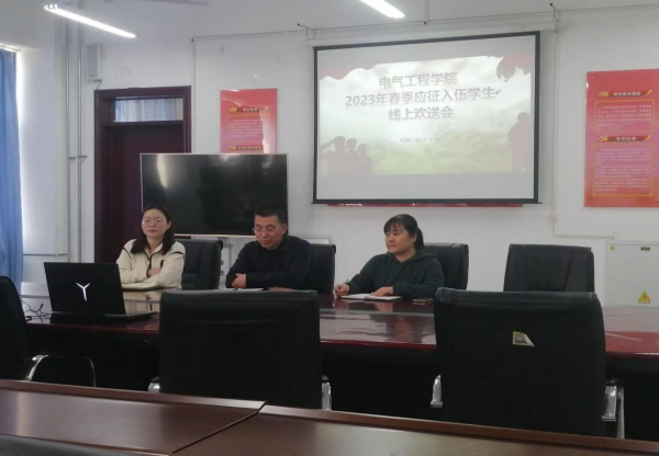 又是一年送兵季,热血男儿赴征程。为进一步增强应征入伍学生的使命感、荣誉感和自豪感,2023年3月17日下午两点半,在11号教学楼313会议室召开了电气工程学院2023年春季入伍学生线上欢送会。电气工程学院党总支副书记出席了本次欢送会,教务科王松梅、征兵工作联系人王莉、入伍学生及家长参加了本次会议。