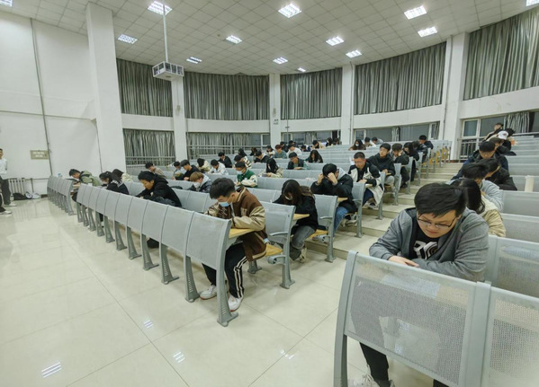 3月28日晚,在8教305举行了入团积极分子结业考试,我院共有51名同学参加。本次考试采取闭卷作答形式,以共青团基础团务知识为主要内容,旨在检验入团积极分子的理论水平和思想政治觉悟。在监考人员分发试卷及答题卡后,同学们迅速进入状态。大家自觉遵守考试规则,严守考场纪律,仔细阅读题干,认真作答,巧妙将近期团课内容和自主学习内容整合归一,展示在试卷上。考场气氛紧张严肃,考风考纪良好,监考人员认真负责,考场秩序井然。通过此次入团积极分子考试,进一步明确共青团的政治定位和共青团员的政治责任,使同学们向着成为一名优秀的共青团员而努力。
