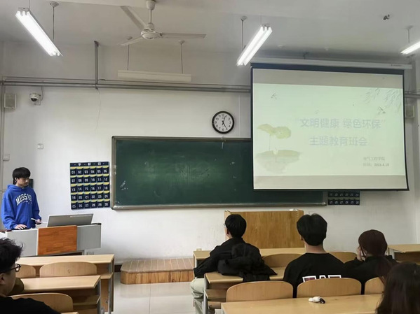 为增强学生文明卫生意识,养成“讲文明、讲卫生、讲科学”的健康生活方式和文明行为习惯,打造积极健康、昂扬向上的精神风貌,形成文明健康、绿色环保的校园环境。2023年4月16日,电气工程学院在8号教学楼组织开展了“文明健康,绿色环保”主题教育班会。我院所有班级的班主任老师及同学参加了本次活动。