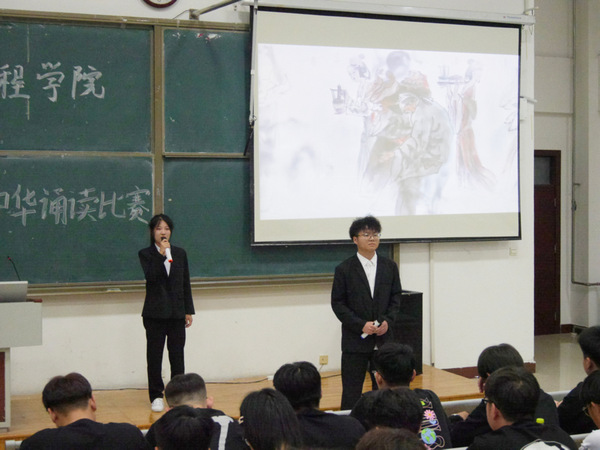 赛前,各位参赛选手积极利用课余时间备赛。比赛中,选手们深情诵读,时而舒缓、时而高亢的语气语调,展示了汉语言文学的魅力,汲取着经典文化的琼浆。李白的《将进酒》、岳飞的《满江红》等经典诗词,慷慨激昂、气势如虹,大家用深情的诵读表达出对祖国的赤诚之心。各组表演完成后,各位评委从仪表形象、精神饱满程度,态度是否亲切,吐字清楚准确等方面对各参赛选手进行打分。最后,盛杰老师对参赛选手的表演进行了点评并宣布比赛结果,对各组表演提出了建议与指导,希望同学在诵读的过程中了解博大精深的中华文化,认识到中华传统文化的重要性。