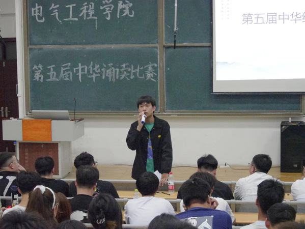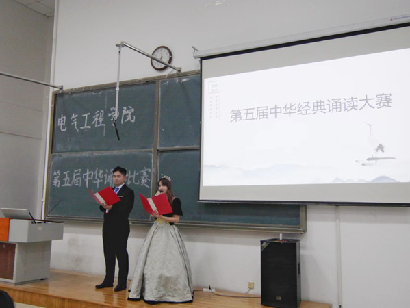 春和景明,绿茵遍野,风暖昼长,正是读书好时节。为进一步提高同学们的文化素养,在诵读中继承弘扬中华优秀文化遗产,增强文化底蕴,营造书香校园。2023年5月24日晚,电气工程学院在8号教学楼305教室举行了第五届中华经典诵读比赛。本届大赛以“诵读经典”为主题,电气学子们共同演绎了他们心中的中华经典。