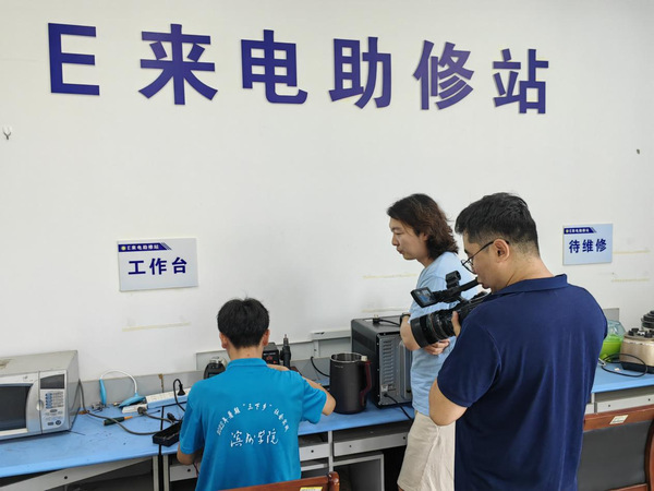 7月11日,山东教育电视台《教育纵深》栏目记者来到滨州学院,对“E来电助修站”社团进行了采访拍摄。积极向上的社团文化和优良的志愿服务精神给拍摄者留下了深刻的印象,此次采访拍摄也是社会对我院特色办学模式的极大肯定。