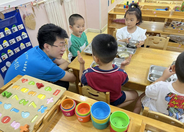 7月10日-12日,电气工程学院“E点爱”志愿服务团赴滨城区京学幼儿园开展以“慧语筑梦 四海同音”为主题的大学生暑期“三下乡”社会实践活动。队员们立足幼儿园办学特点,开展了形式多样、内容丰富的志愿服务活动,为助力幼儿坚持听说普通话,促进中华优秀语言文化传承,积极贡献青春力量。京学幼儿园园长李小花及部分教师,“三下乡”社会实践指导教师赵建斌、徐可参加活动。
