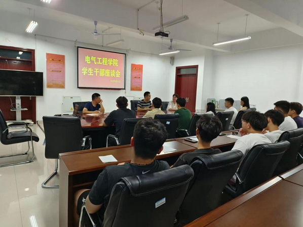 为提高学生干部整体素质,加强学生干部队伍的凝聚力、战斗力,电气工程学院于2023年9月22日在11号教学楼313教室开展了学生干部座谈会,我院党总支书记杜常青,学生科科长赵建斌,2020、2021、2022级的班长、团支书,学生会主席团成员参加了本次会议。