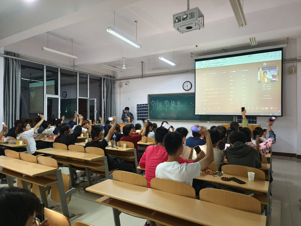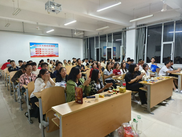 此次活动内容丰富多彩,每个班都有自己独特不同的活动。学院精心准备了月饼、饮料、零食,这不仅是对同学的节日祝福,更是学院对每一位同学的关心与爱护。有的班级组织同学们共同观看了一部饱含教育和感动的电影作品,享受影视艺术的熏陶,感受延绵不息的文化力量。观影结束后,同学们进一步展开了深入而热烈的交流,分享了对影片主题的思考和个人感悟。有的班级同学们进行了热烈的交流互动,分享各自在进入大学以来的喜悦、收获、烦恼、迷茫以及对未来的期待。也有班级举办了歌曲合唱环节,同学们打开闪光灯,高举手机,共同合唱经典歌曲,音符在空气中交织,歌声串联起了大家的心房。在这个花好月圆的夜晚,他们敞开心扉,欢声笑语,整个会场中充斥着节日的喜悦,热闹的氛围让每位同学融入其中,沉浸在这温情四溢的时刻。