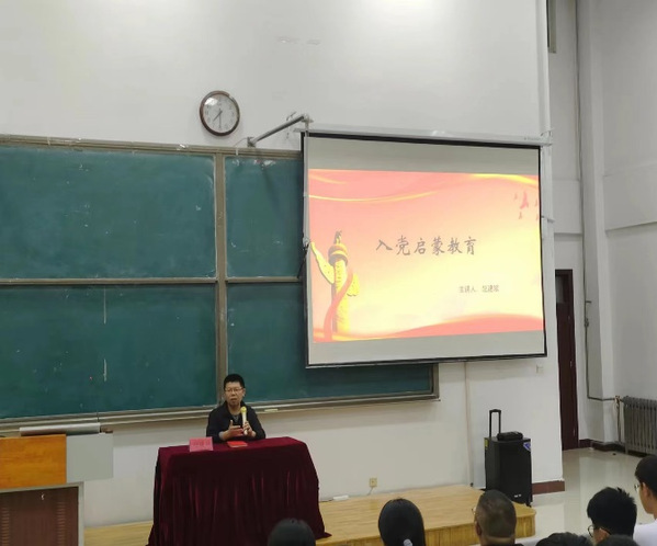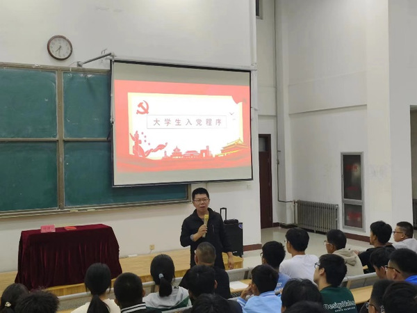 活动开始,首先由学生科科长赵建斌向2023级学生介绍了入党的必要性以及重要性,并且通过举例生活中的小事深入浅出的讲解了入党对同学们今后成长道路的影响。然后,详细对中国共产党的性质、奋斗目标、根本宗旨和指导思想等内容进行阐释,加深了同学们对于中国共产党的了解和认识,通过讲解“怎么样坚定信仰”引导学生端正入党动机,以实际行动早日加入党组织。最后,赵建斌老师强调了青年学生要认真学习习近平总书记在庆祝建党100周年大会上的讲话内容,要以实现中华民族伟大复兴为己任,增强做中国人的志气、骨气、底气,不负时代,不负韶华,不负党和人民的殷切期望!