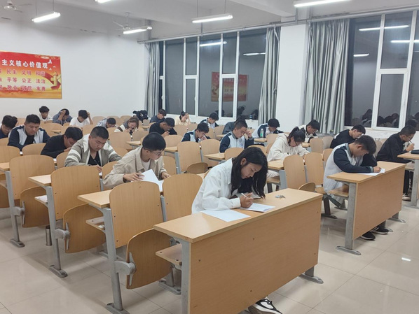 本次考试为闭卷考试,有选择、填空、简答三种题型,考试时间为1小时。为保证考试纪律,每班安排了一名学生会干事监考。本次考试,同学们态度端正,答题认真,整体表现良好。相信本次考试后,同学们会对学校规章制度有更深层的理解与认识,可以更好地遵守规章制度,为塑造一名合格的大学生打下坚实的基础。