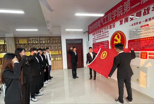 为深入学习贯彻习近平新时代中国特色社会主义思想,认真落实习近平总书记关于青年工作的重要思想,坚定我院团员青年跟党走的信心和决心,2023年12月11日,电气工程学院在电气工程学院党员活动室举行“重温入团誓词 践行青春誓言”重温入团誓词活动。