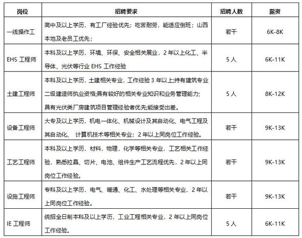周一至周五全天面试——山西晶科能源临时办公室(山西应用科技学院新校区对面)