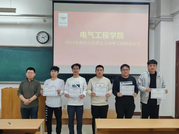 2023年4月20日,电气工程学院2023年“青马工程”培训班结业仪式在8教113教室顺利举行,学院团总支书记赵建斌、辅导员徐可、王莉以及培训学员参加本次仪式。