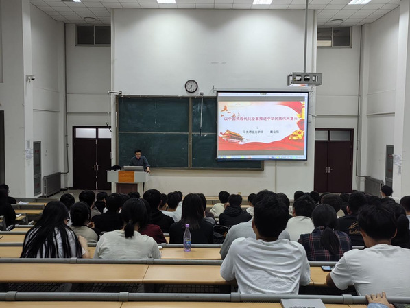 戴业强以《以中国式现代化全面推进中华民族伟大复兴:二十大精神解读》为题,详细讲解了现代化是近代以来世界发展的必然趋势,中国共产党致力于实现中国现代化,中国共产党领导人民成功开创了中国式现代化道路及全面建成社会主义现代化强国、实现中华民族伟大复兴等内容。他希望同学们能够坚持不懈用习近平新时代中国特色社会主义思想凝心铸魂,牢记初心使命,坚持理论和实践相结合,以聪明才智贡献国家,以开拓进取服务社会,不负时代伟业,不负青春韶华。
